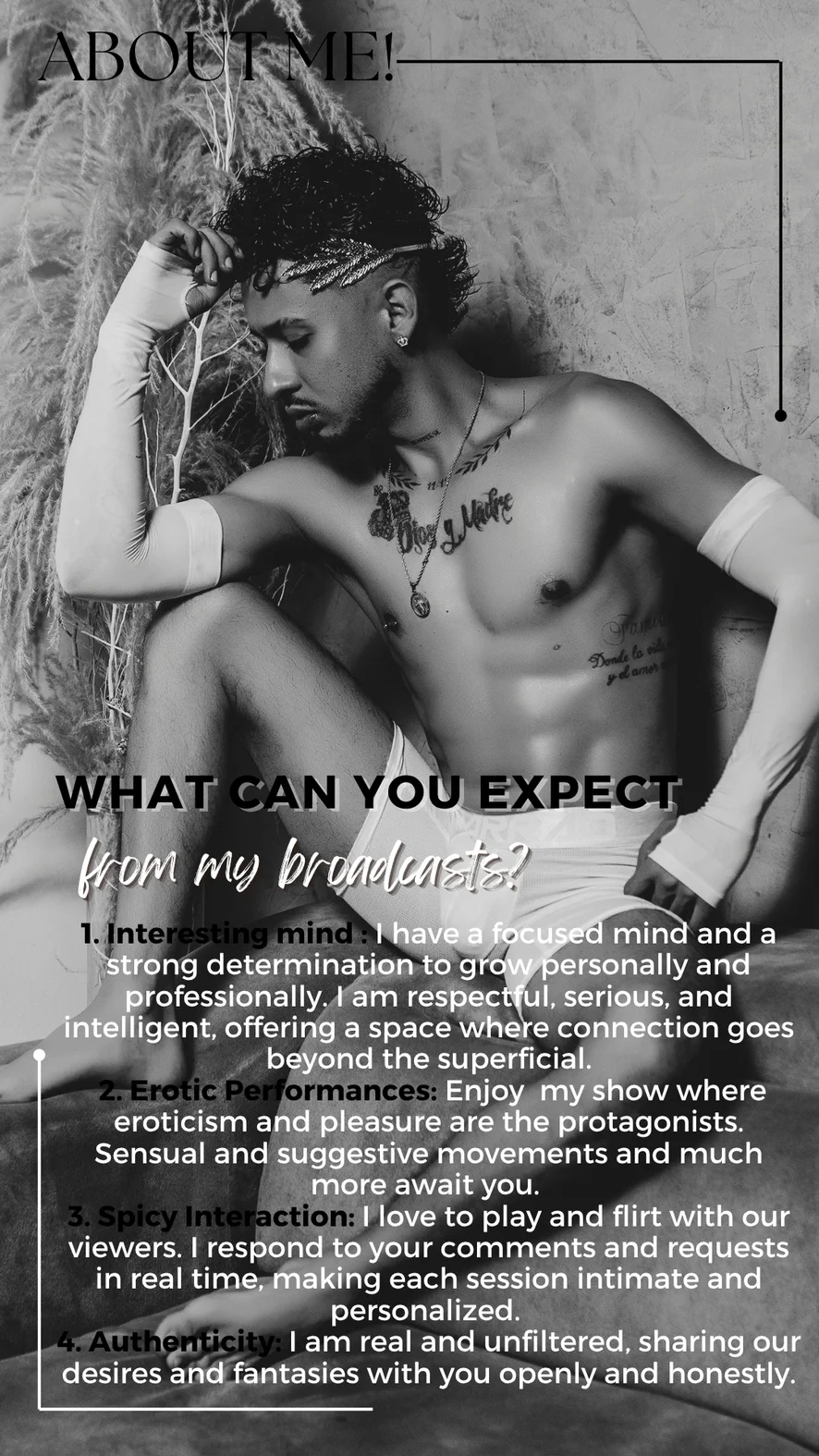 Doggy Style, Eroottinen tanssi, Tuhmat puheet, Strippaus, Jalkafetissi, Taivutus, Hinkkaaminen, Nännilelut, Touhutipat, Masturbointi, Jalkaseksi, Öljyesitys, Twerkkaus, Ahegao, Selkäsauna, Syväkurkku, Roolileikki, Seksilelut, Suihinotto, Suukapulointi, Sormetus, CEI, Kalu-luokitus, Nöyryytys, Runkkausohjeet, Cum Play, SPH